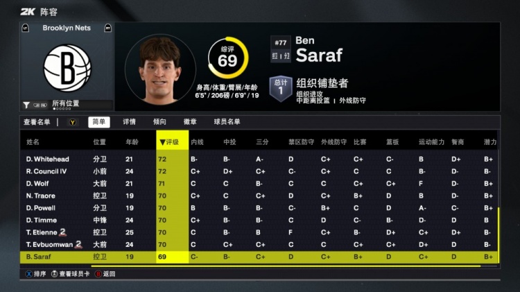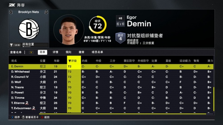 8月30日最新消息 NBA2K26球员能力值正式公布,篮网队具体评分如下: